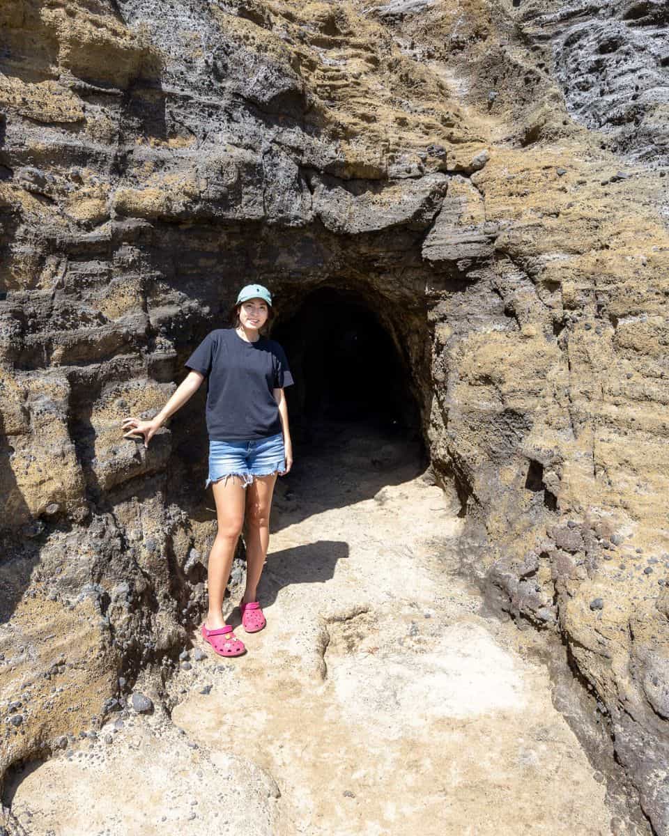 One of the cool things about Halona Beach Cove is the lava tube behind the beach that extends into the cliffside. The tube goes about 50 yards, underneath the highway, and comes out on the other side.