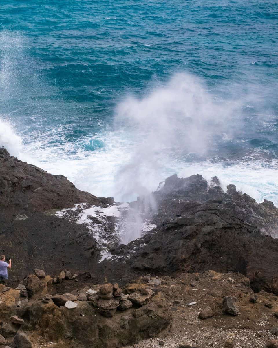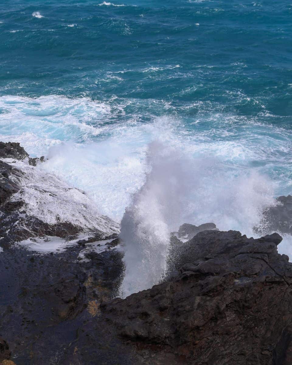 On days with big surf, the blowhole will erupt out of the rocks into the air.