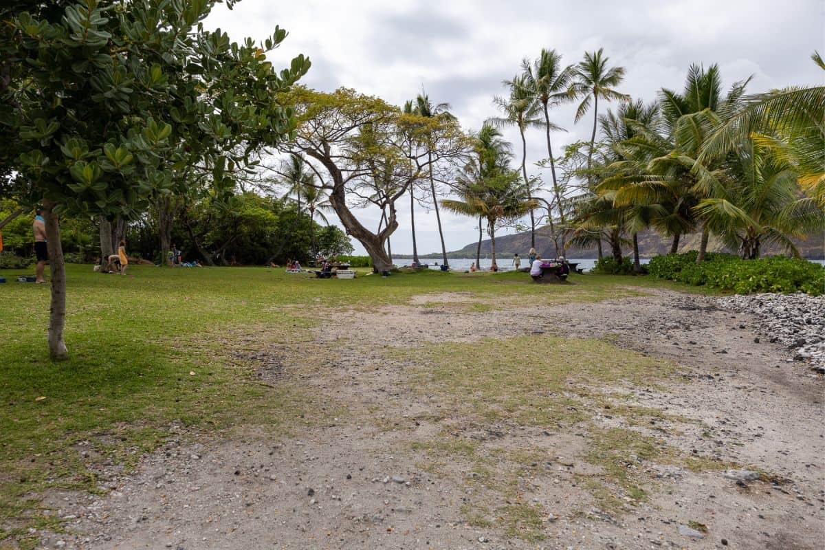 There is a small gravel parking area next to Manini Beach Park, however, it tends to fill up quickly, especially on weekends.