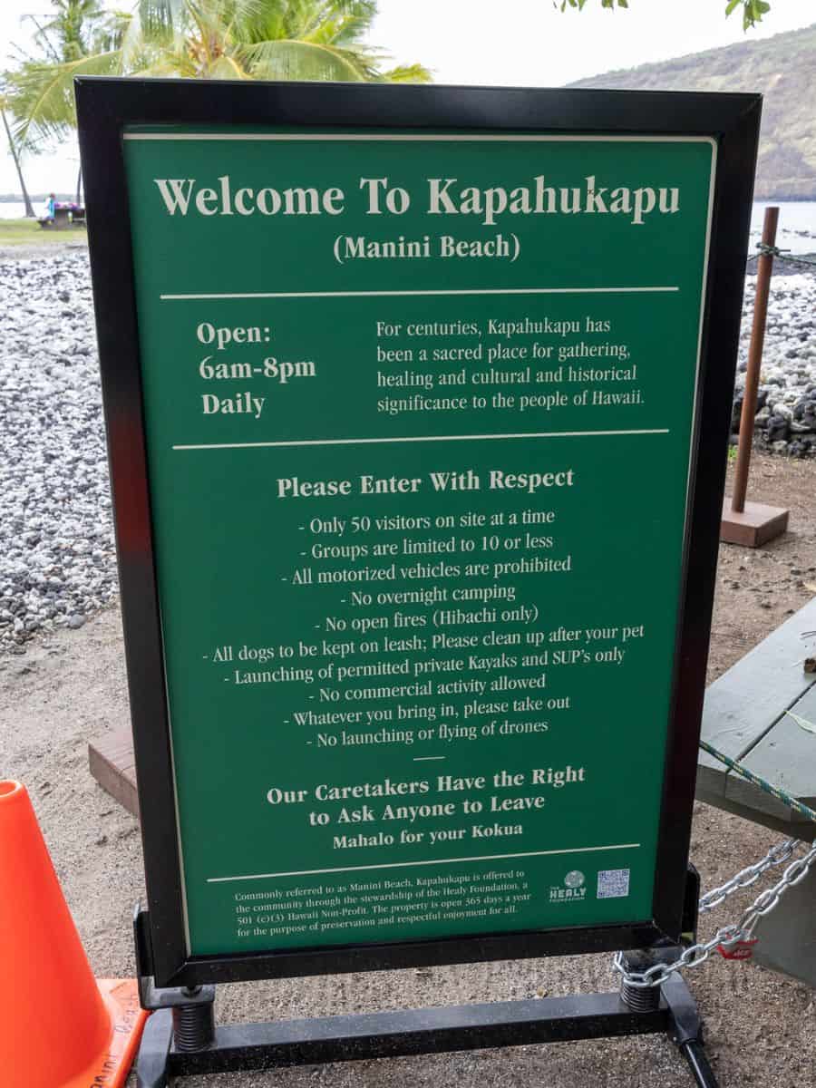 Manini Beach is located on Manini Beach Road – about a 4-minute drive from Kealakekua Bay State Park in Captain Cook.
