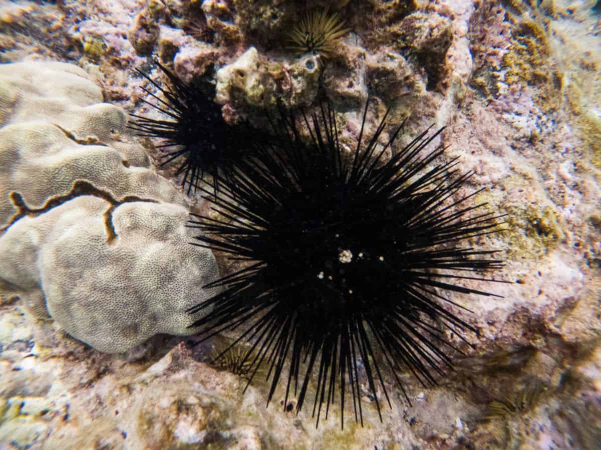 Like most reefs in South Kona, the crevices of the rocks provide hiding places for wana (sea urchins) to grow. The park’s caretaker Sandy told us to not step on the reef – and the presence of wana served as a reminder of that.