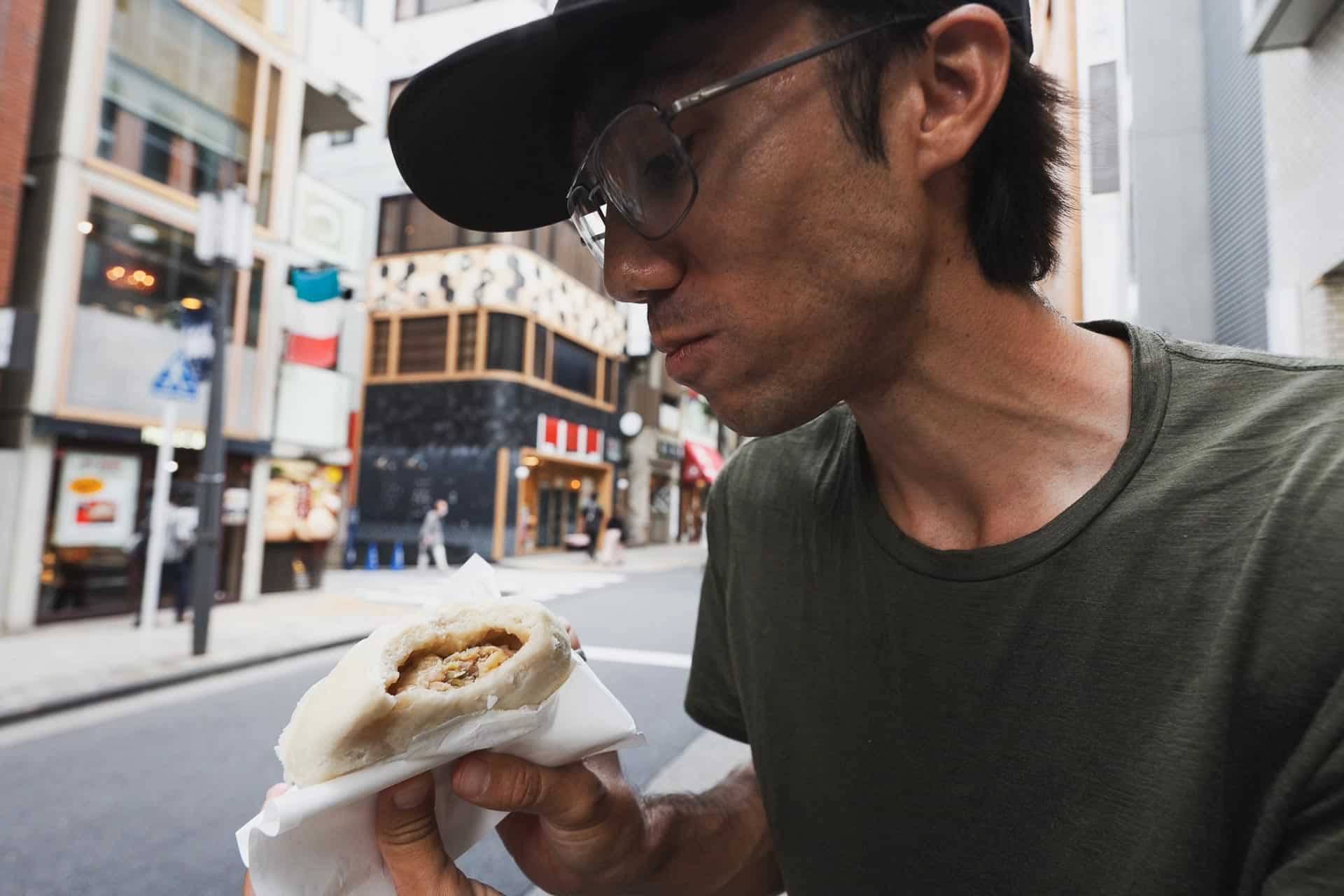 Stepping into Kagurazaka Gojūban in the mid-morning, we found it refreshingly less crowded than the bustling Taiyaki Wakaba. Ordering a steaming nikuman, we carried it outside, letting Tokyo’s air cool it down.