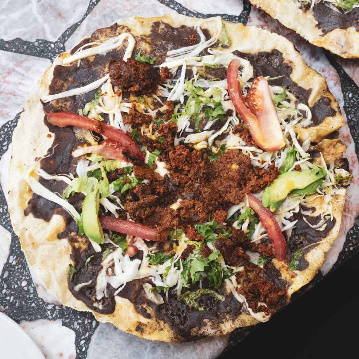 Then you have tlayudas: large, crispy tortillas topped with refried beans, Oaxacan cheese, lettuce, and a choice of meats. It’s one of the great late-night street foods of Oaxaca (and one of my personal favorite foods of all time).
